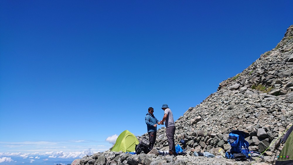Tiba di campsite, rehat sebentar. Sambil itu merancang untuk mendaki pula ke puncak sebelah ini, Karasawadake.