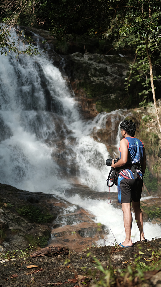 Berjalan HAMPIR DUA JAM, maka kami pun tiba. Belum sampai lagi di air terjun, kami dah berfoto-foto. Sebab nak berlatarbelakangkan waterfall tu. Tak kurang yang sedang ambil video ala-ala National Geography gituuu.... Supaya ngam dengan sosial media masing-masing.
